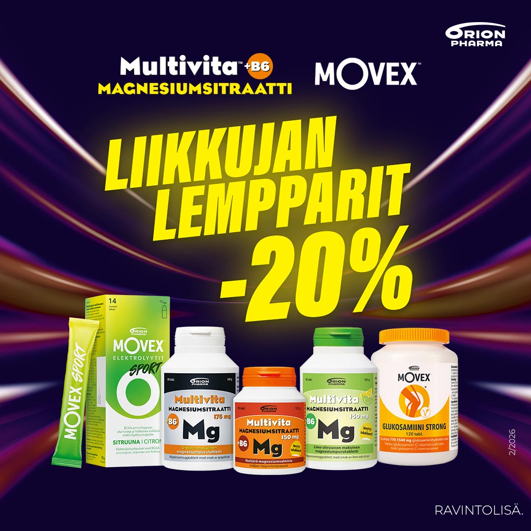 Multivita Magnesiumsitraatti+B6- ja Movex-sarjan tuotteet